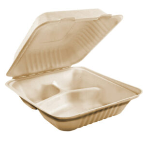 These containers resemble regular foam or plastic clamshells in appearance and feel, but they are more environmentally friendly. They come in a wide range of sizes and styles, from small sauce containers to large takeout boxes, making them a top choice for restaurants, catering companies, and grocery stores.